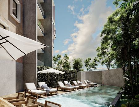Es un desarrollo de 70 departamentos inspirado en un estilo de vida relajada, buscando transmitir desde el acceso al edificio la sensación de libertad y momentos de felicidad al acompañar tu recorrido siempre rodeado de área verde, sin importar el punto en el que te encuentres dentro del complejo..